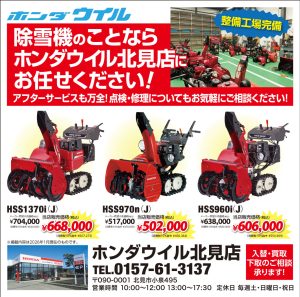 こんにちは、ホンダウイル北見店です。